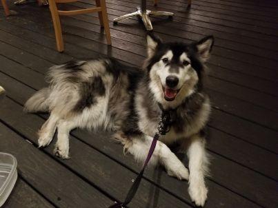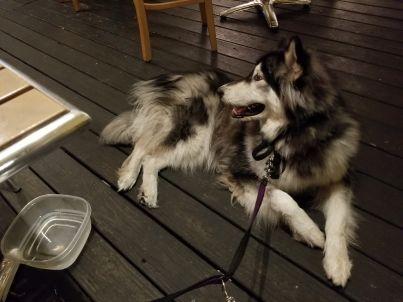 As I paid for the meal and left, Lily decided to see what the last couple in the restaurant was having. She sniffed on the table, and I pulled her away. As with most people, they said it was fine. I didn’t think so. In general, she was pretty good during the meal. She had several onlookers, and being as large a dog as she is, she scared several of them just from her presence alone. She sat in the middle of the walkway, no matter what I did. I called her over with treats and as soon as she got one, she moved back to position. She did do her catching trick successfully once, but that was mainly my fault because I didn’t want her in the aisle so there wasn’t enough distance between us.