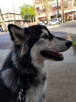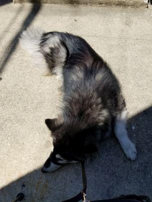 Lily was popular with the passersby and was even friendly towards some. She was in a general chill mood and just wanted to lay there. She did want attention from me, and then alternately, after making noise and I tried to calm her, not wanting to be near me and backed into the walkway traffic. She saw a few birds that made her perk up, but I did not want her pulling so put an end to it faster than she wanted. A couple that was from Texas sat at the table next to me and Lily wanted to say high, but they were indifferent to her the whole time we sat. After a bit, Lily got sick and made a mess on the ground. I tried to keep her away as best I could.