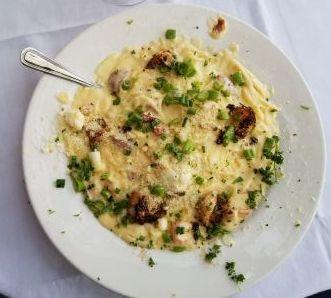 The meal came out and it was a huge bowl of pasta with blackened shrimp, roasted garlic cloves, crawfish, and anduoite. The cream sauce on it was thick and refreshing. It did not taste like something I would get at an Italian restaurant chain. It had a little kick and was extremely filling.