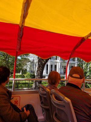 While I sat, alone, the bus filled at the next stop. The entire top was full save two seats. One next to me and the other next to someone across from me and up one. There was a group of much older ladies that came upstairs and we about to part, but someone pointed out the spare seats, although it would separate the group. I warned the lady I might bite, jokingly, and she responded, seriously, that it would be OK. So, I realized it was going to be that kind of tour. During the course of the ride we shared, she was pretty good at responding to some of my milder comments I decided to say aloud. She had a few of her own and we laughed on occasion.