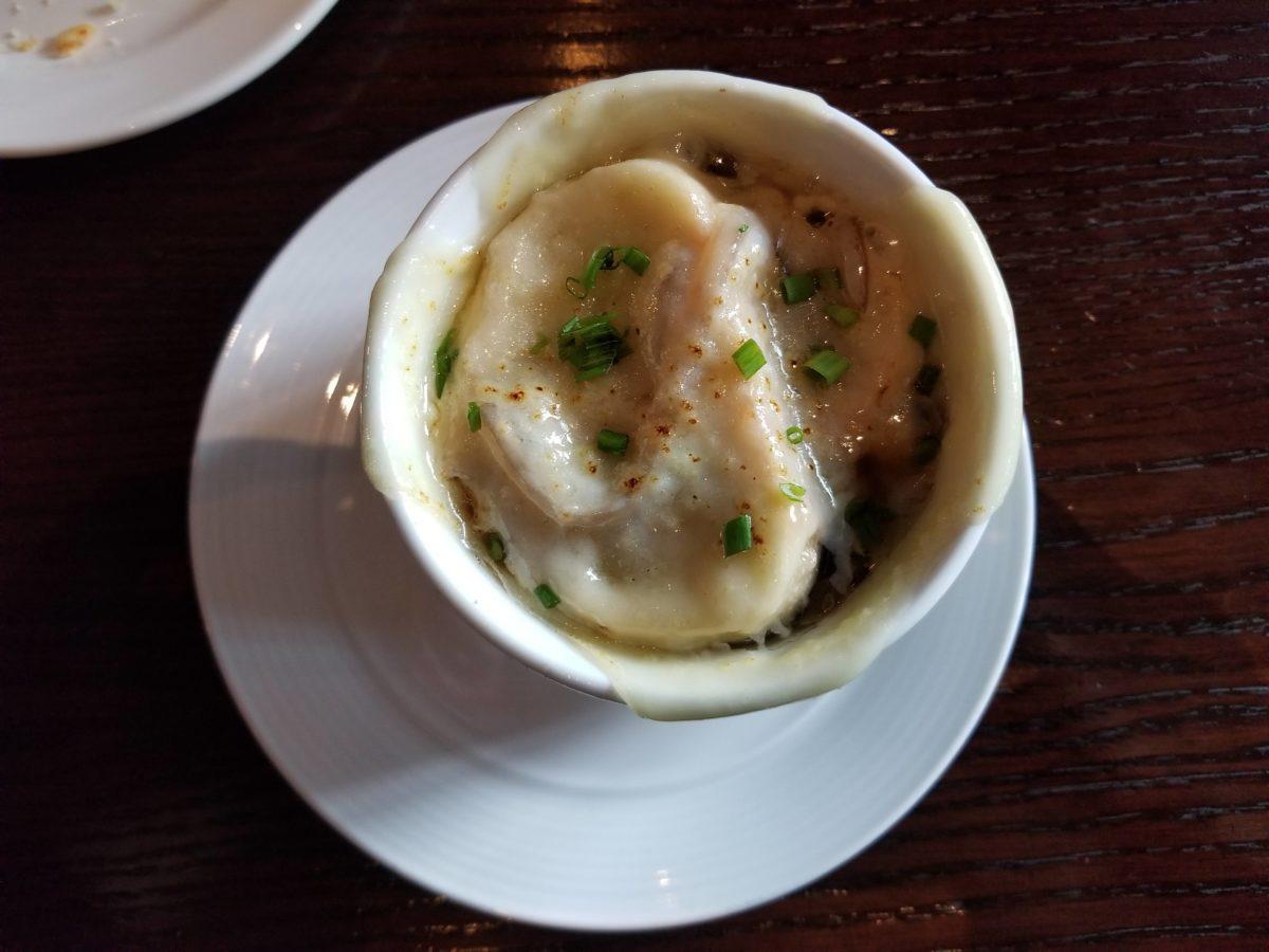 So the dinners were one of my friends, her son (dining instead of her husband for this meal), her best friend, and me. Laura took orders from the ladies first and then by age. I was debating the French onion soup or the fondue. As everyone else ordered the fondue, I went with the soup. Just want to point out that I did not have an Arnold Palmer and opted for water because my sugar consumption was getting a little out of hand and I needed to reel it in.