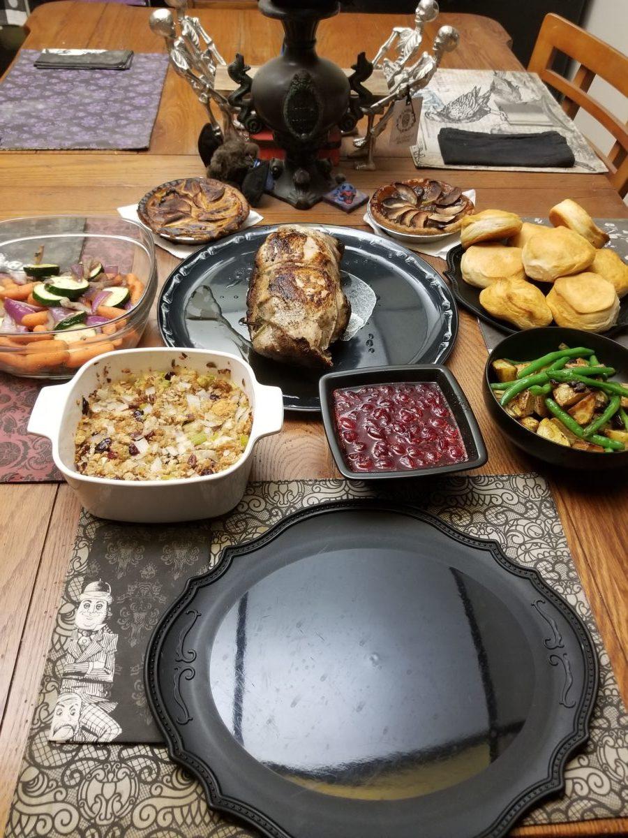 When the house started to get smokey, I turned on the fan and decided it was done. I placed on a platter and tented with aluminum foil. While it sat, I did the rest of the sides and dessert, but that is for part two tomorrow, including what this looked like inside.