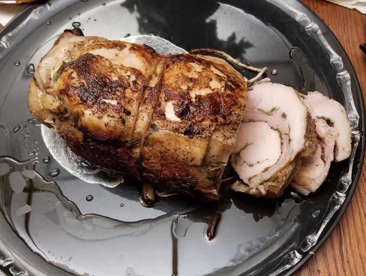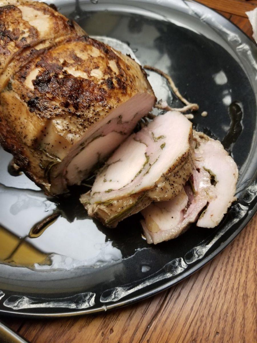 The herbs did precisely what they should in that they enhanced the fowl but did not overwhelm. Nothing was impossible to cut or chew either. I was concerned that I used whole sage and long rosemary. The skins also seemed to be a concern in thought. As long as I had a sharp knife, which is highly recommended in general, there was no issue cutting. It was like butter with the correct tool.