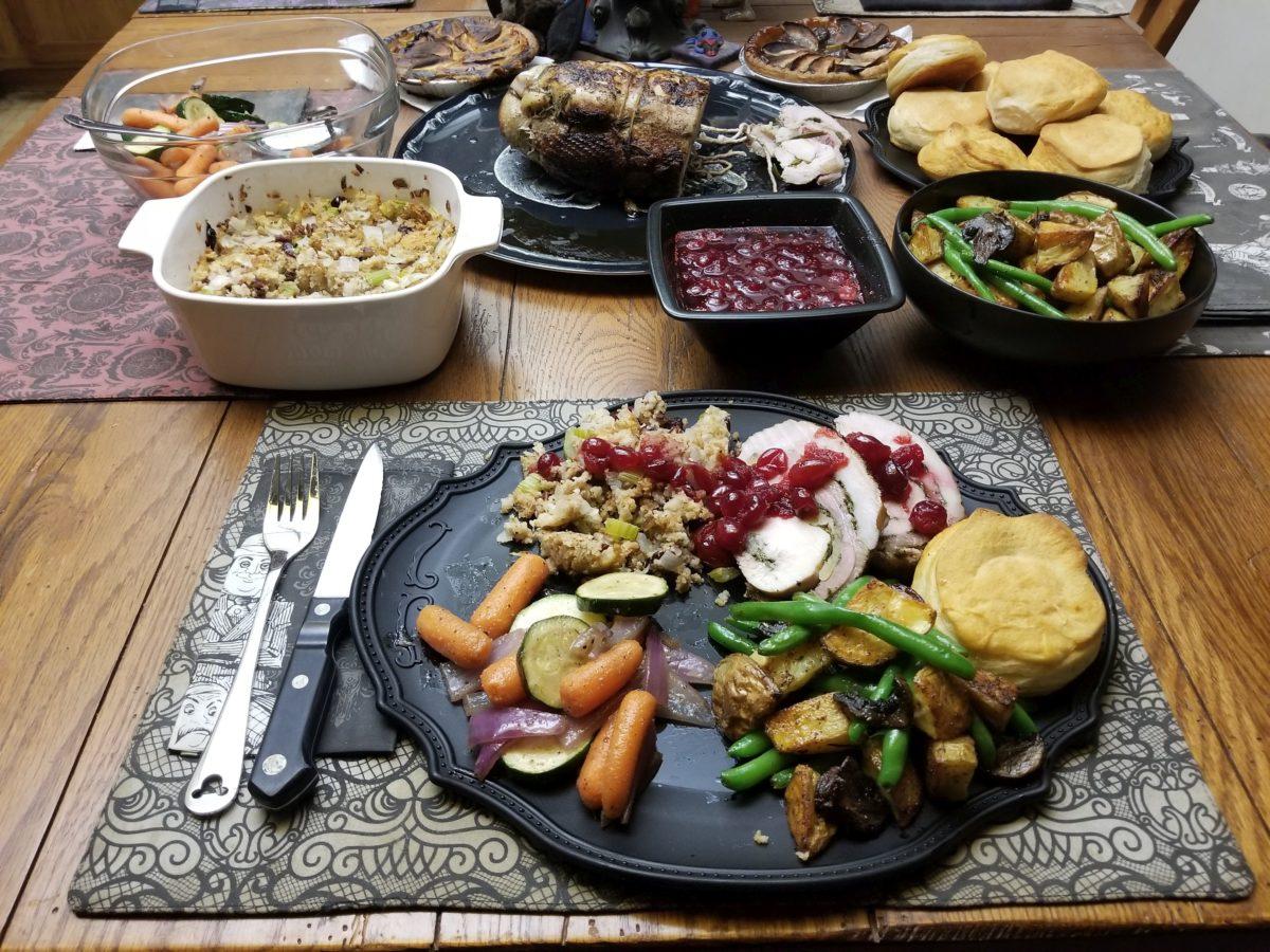 When I came up with the meal, I decided I was going to make a turducken. I had to have potatoes (yellow) in some form, as well as vegetables (green, orange, and purple). I also needed stuffing that I had to make this time. Because the premade turducken had it in the past, I didn’t need to make any. This year, I did. I also wanted to make gravy but didn’t think I needed it. Honestly, I’m intimidated by making gravy from scratch – sauces and gravy are my weak points at the moment. I made the cranberry (red) sauce successfully in the past, and it is very traditional to have so I had to have it. Something was missing though. I completely forgot dessert.