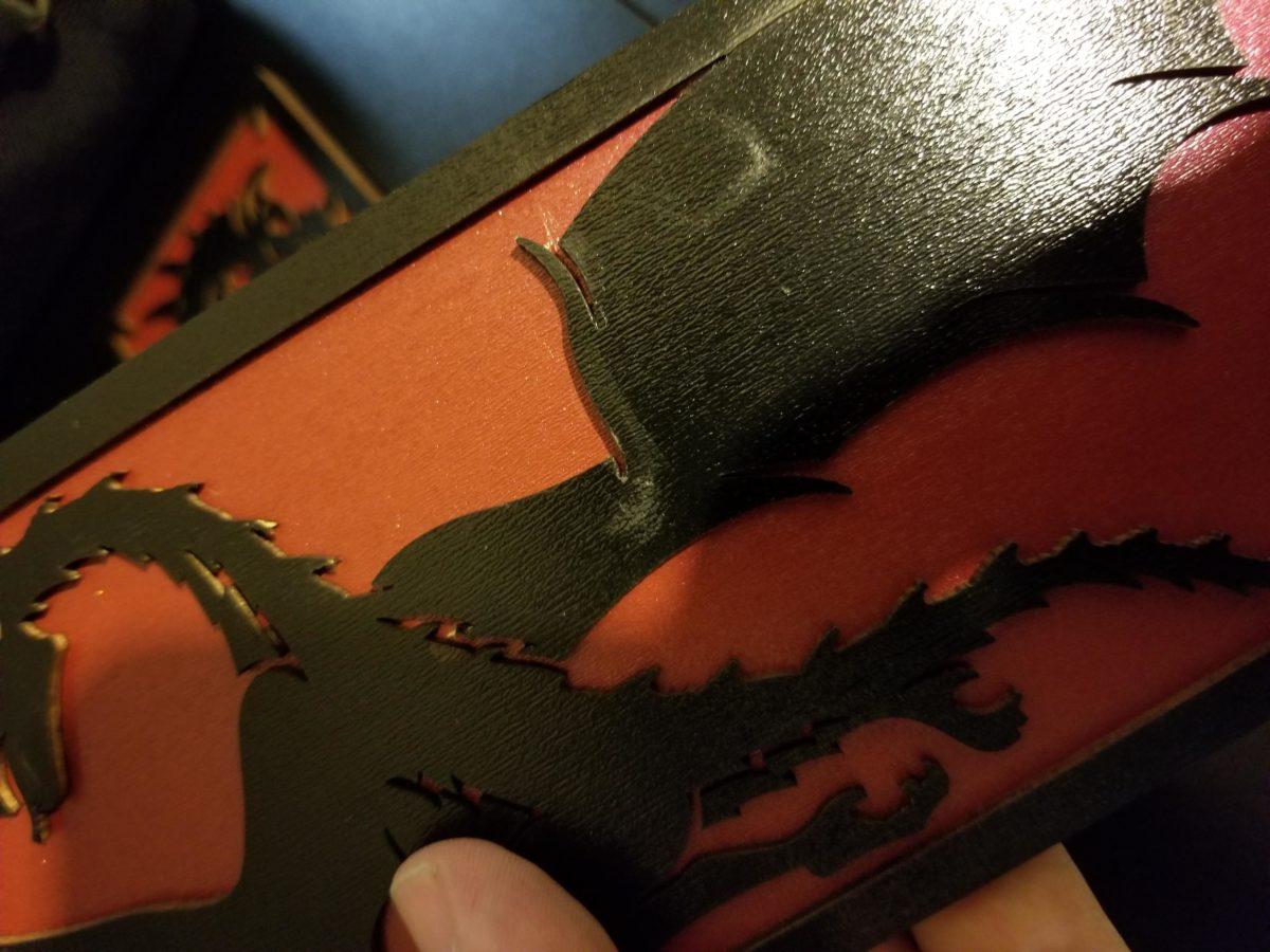 The other point of note is that the paint was not completed on the sides. The blank deco that came with the table looks better than the deco with the dragons. I might paint the sides to make it look consistent, but out of the box, I shouldn’t have to do that.