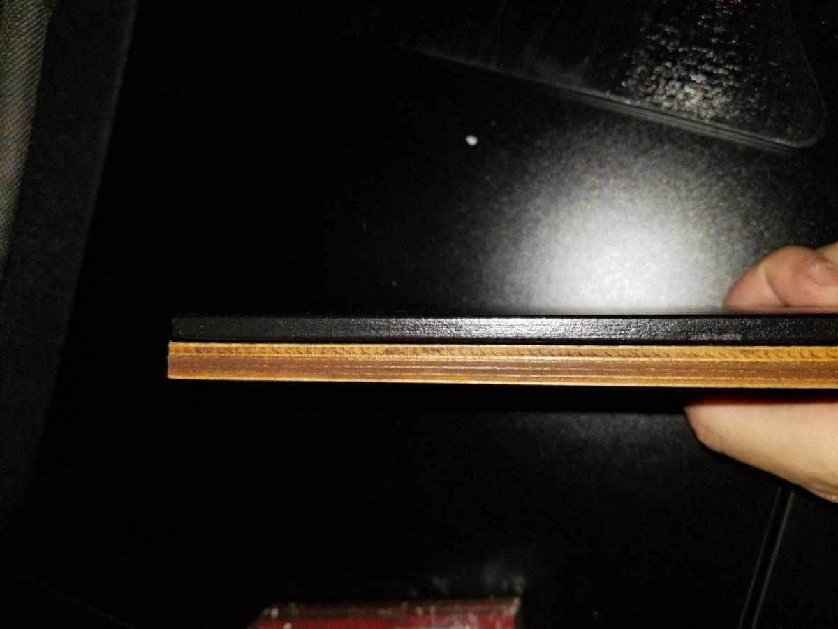 Once I opened the package, there was mention of three different parts. The main one was the three toppers that turn the recessed table into a regular table. The fourth slat was the last (or first) topper that has a tab on it that can be depressed to reveal a lever to pick up the slat. The problem with the method is it is not recessed, so the entire table is not flat. There is another issue, but I will mention that in a later section. Not only that, but it is not waterproof because the slats do not fit tight and liquid can spill through. It is covered with a laminate to make it black, but it is not the same quality wood as the table. It also seems to scratch readily. After having the top for less than a day, I already had a scratch on it. Had it been wood, I could have buffed it out. That is the same issue with the rails.